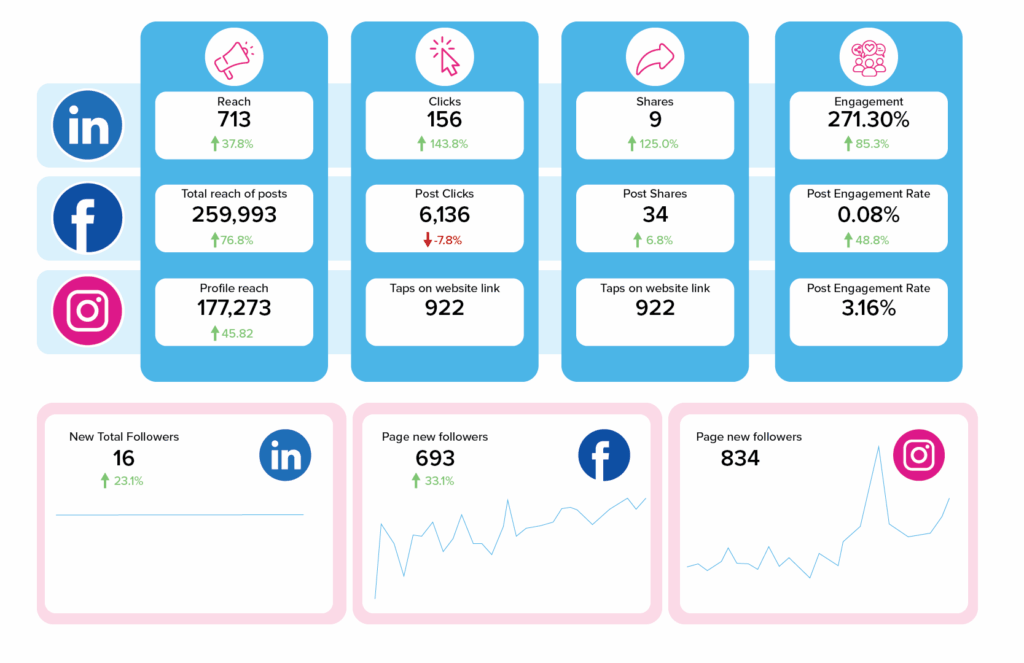 Tracking what works (and what doesn’t) is how you build an effective social strategy. If you’re not using a tool like Clearview Social with built-in reporting tools, a reporting template pulls all your key metrics into one place—engagement, reach, follower growth, clicks, conversions, and more—so you can quickly see how your social media efforts are performing.