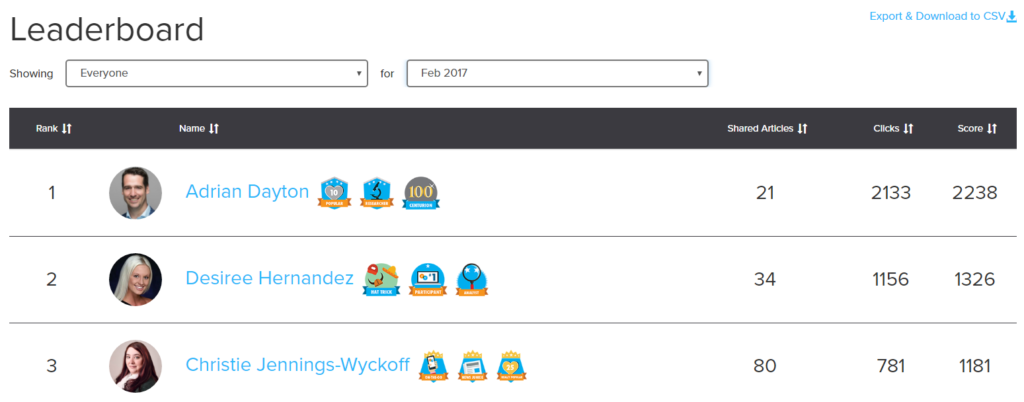 One request we frequently get is for a better way to track how the individual members of an organization are doing, not on an overall basis, but month-to-month. Usually, this is for competitions and incentive programs, which are a great way to get everyone on your team engaged in sharing great content. The monthly leaderboard is one more improvement in a series of changes we’re making, starting with the recent release of the badge system, to help new users learn about ClearView Social and get involved from their very first day on the site.